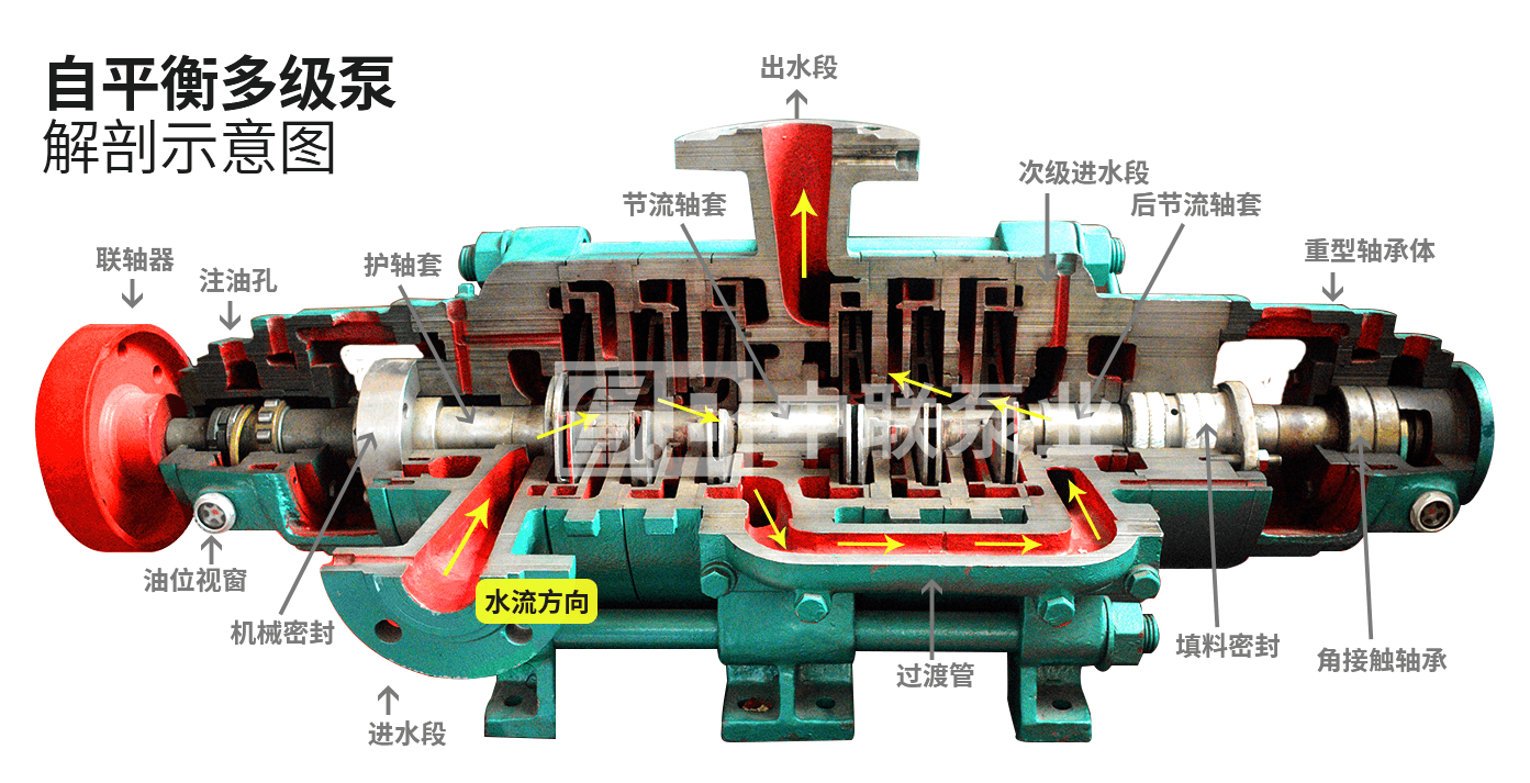 ↑DFP型自平衡卧式多级化工离心泵结构解剖图↑